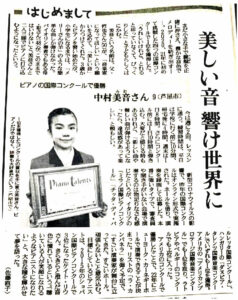 小林聖心女子学院小学6年生の中村美音さんをご紹介いたします。昨年、数々の国際コンクールで入賞・優勝されました。