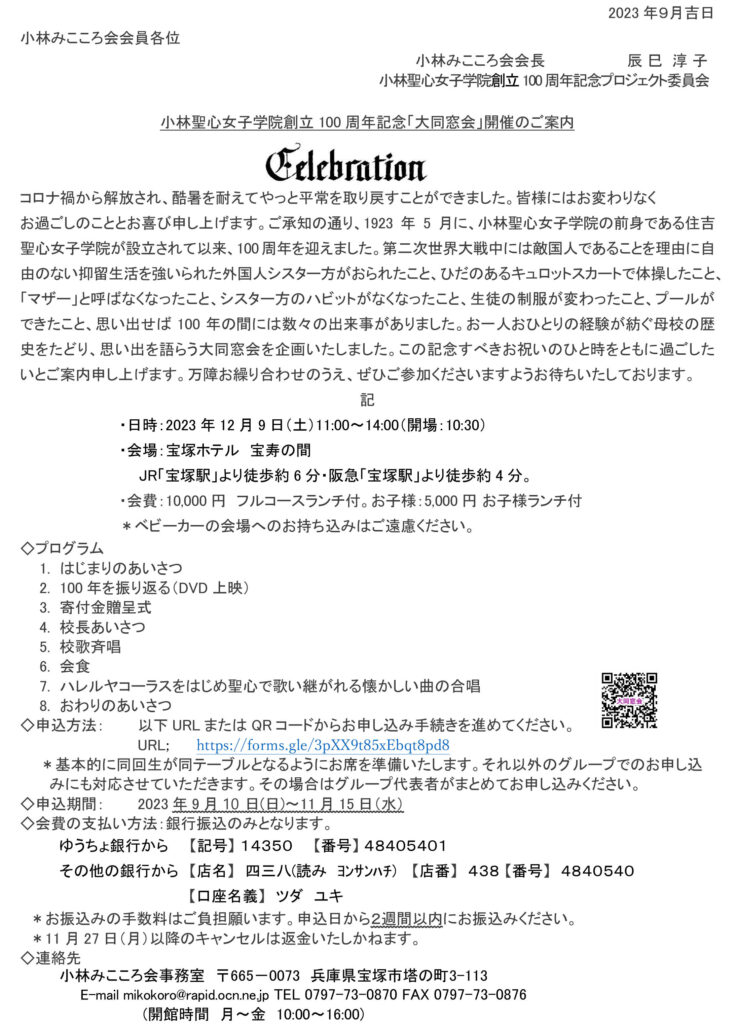 小林みこころ会主催大同窓会のご案内