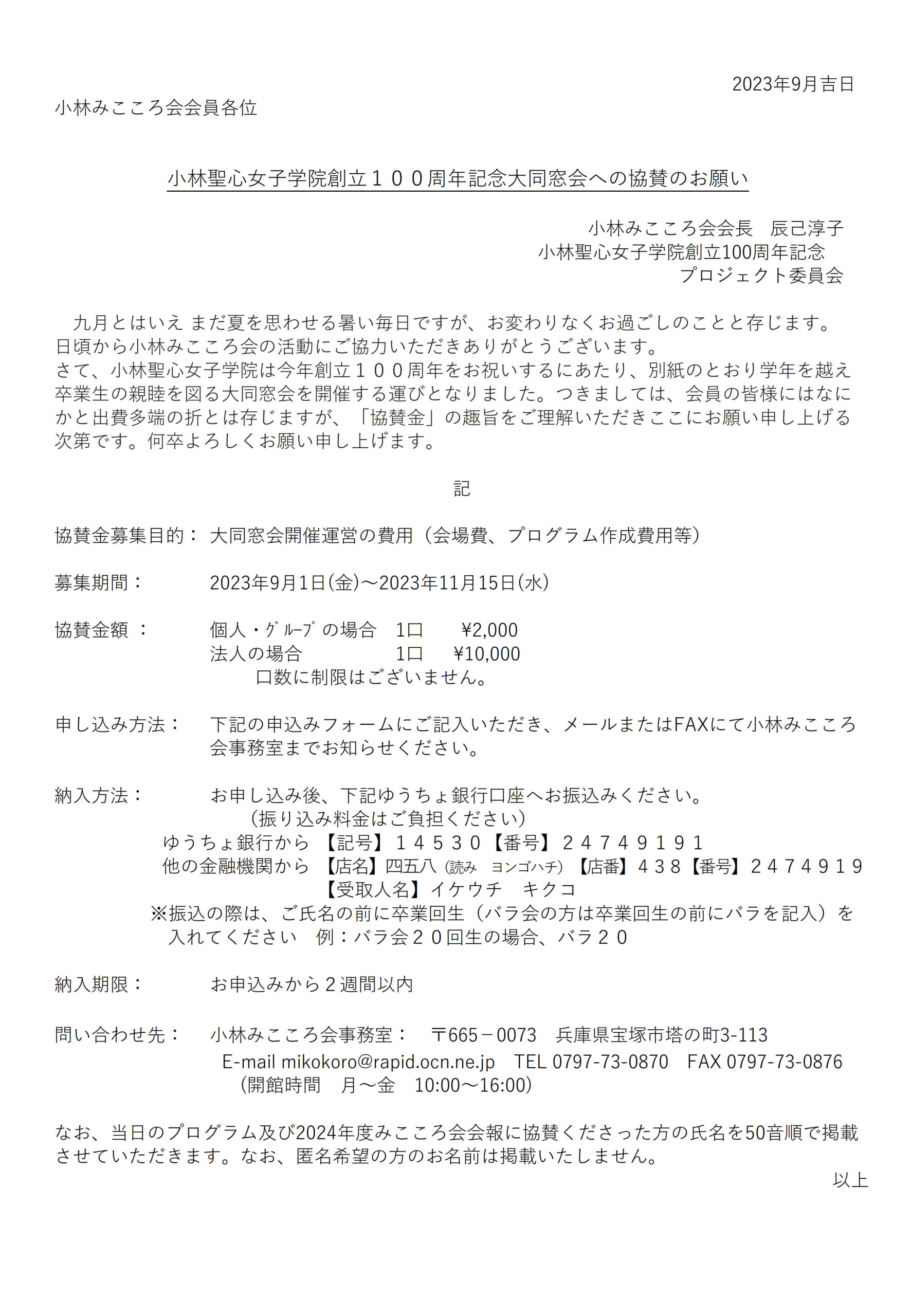2023年10月17日 / 最終更新日時 : 2025年11月12日 小林 みこころ会 行事等のご案内