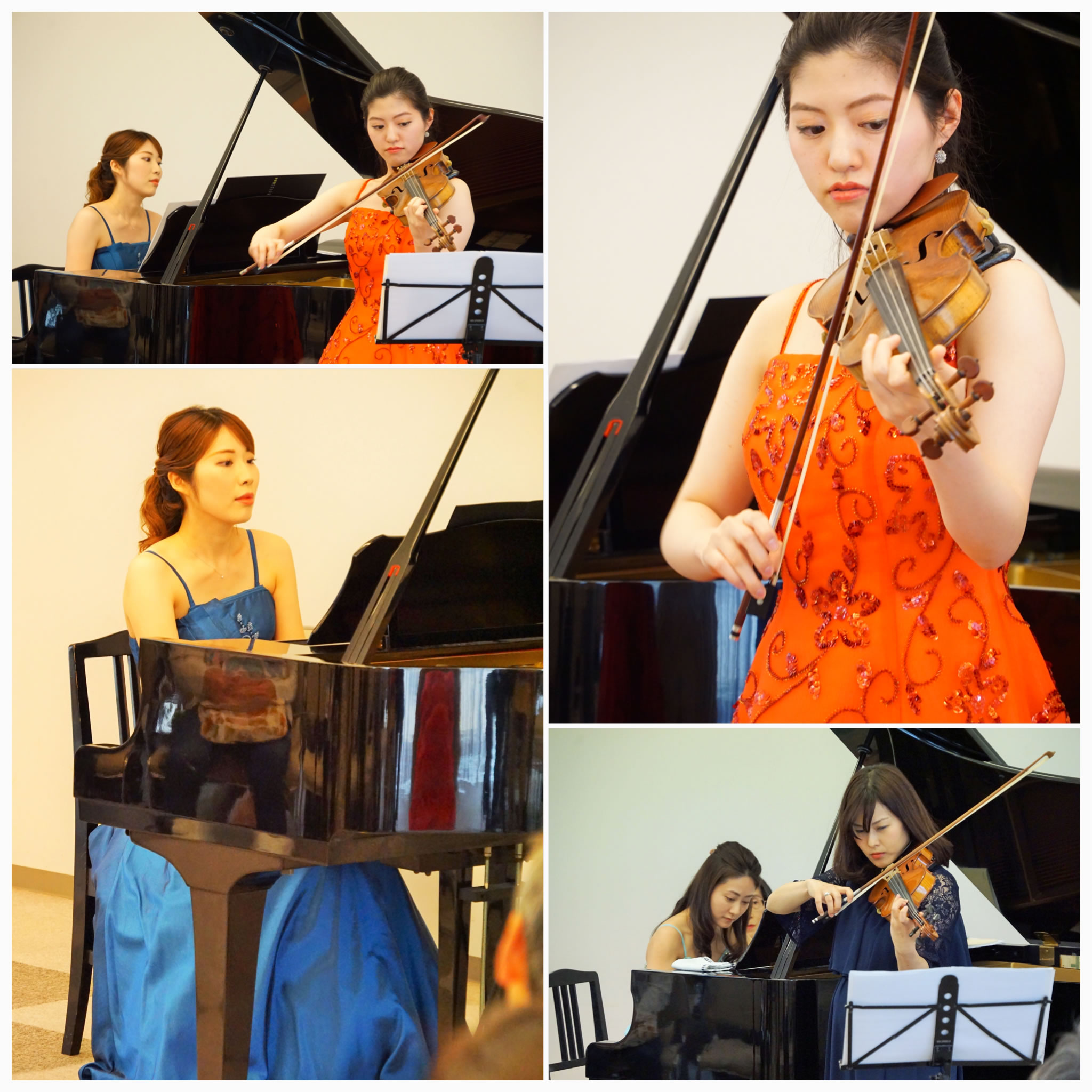 ピアノとヴァイオリンのデュオが2組とヴォーカルをお楽しみいただきました。