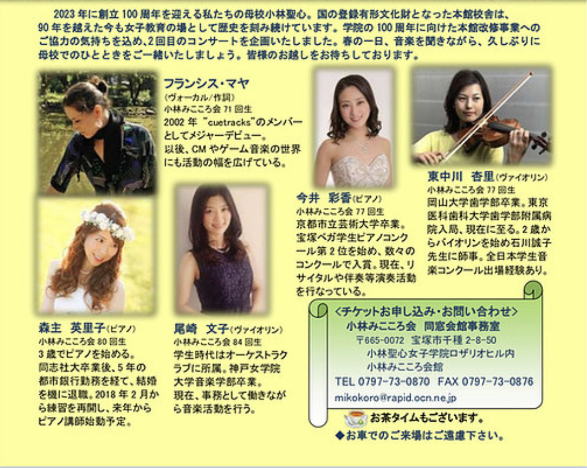 春の一日、音楽を聴きながら、久しぶりに母校でのひとときをお過ごしくださいませ。