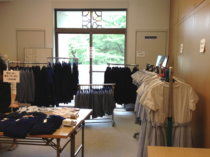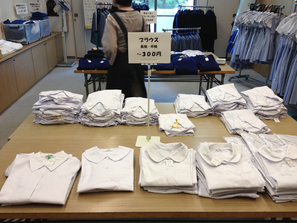 在校生や卒業生のご厚意により集まった制服を大切に受け継いでいくお手伝いとして、リサイクル制服の販売会を行っています。