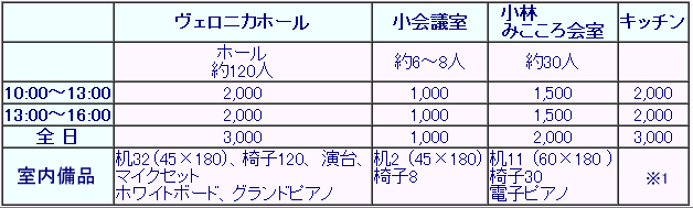 ※3 音楽会、展覧会、結婚式、婚約式他各種パ-ティ-などにご使用の場合、別に規定を設けておりますので、事務室までお問い合わせ下さい。
